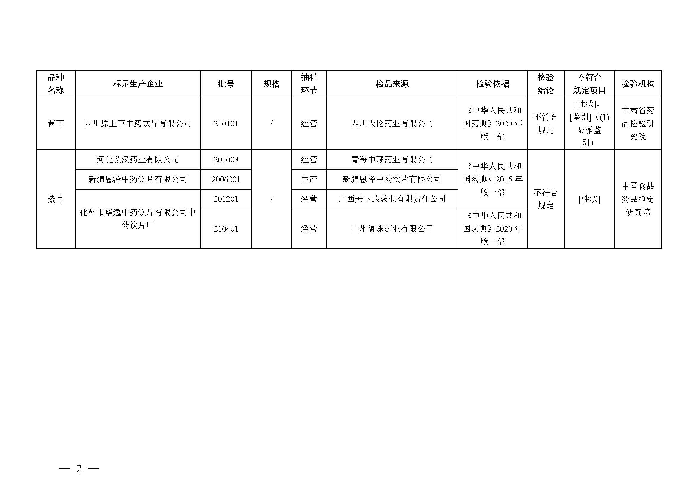 經(jīng)甘肅省藥品檢驗研究院檢驗,標示為四川原上草中藥飲片有限公司生產(chǎn)的1批次茜草不符合規(guī)定,不符合規(guī)定項目包括性狀、鑒別。