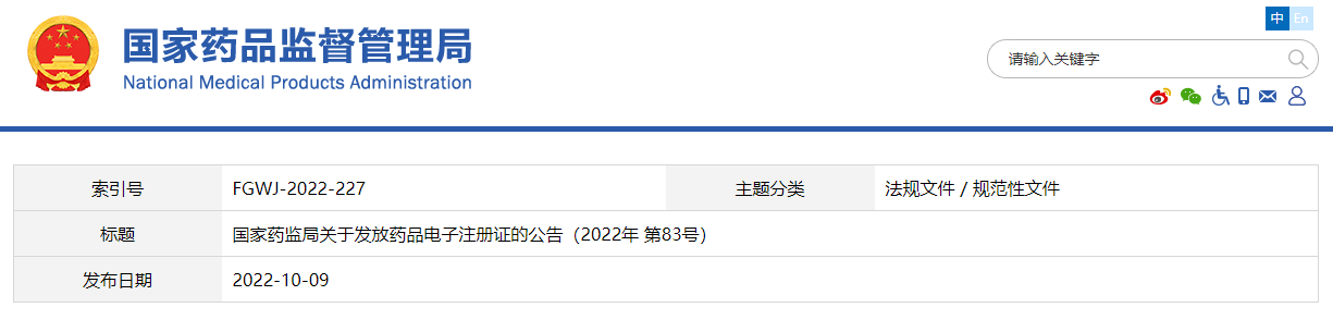 為貫徹落實黨中央、國務(wù)院關(guān)于深化“放管服”改革的重要決策部署,優(yōu)化營商環(huán)境,進(jìn)一步激發(fā)市場主體發(fā)展活力,為企業(yè)提供更加高效便捷的政務(wù)服務(wù),經(jīng)研究決定,自2022年11月1日起,發(fā)放藥品電子注冊證,F(xiàn)將有關(guān)事項公告如下: