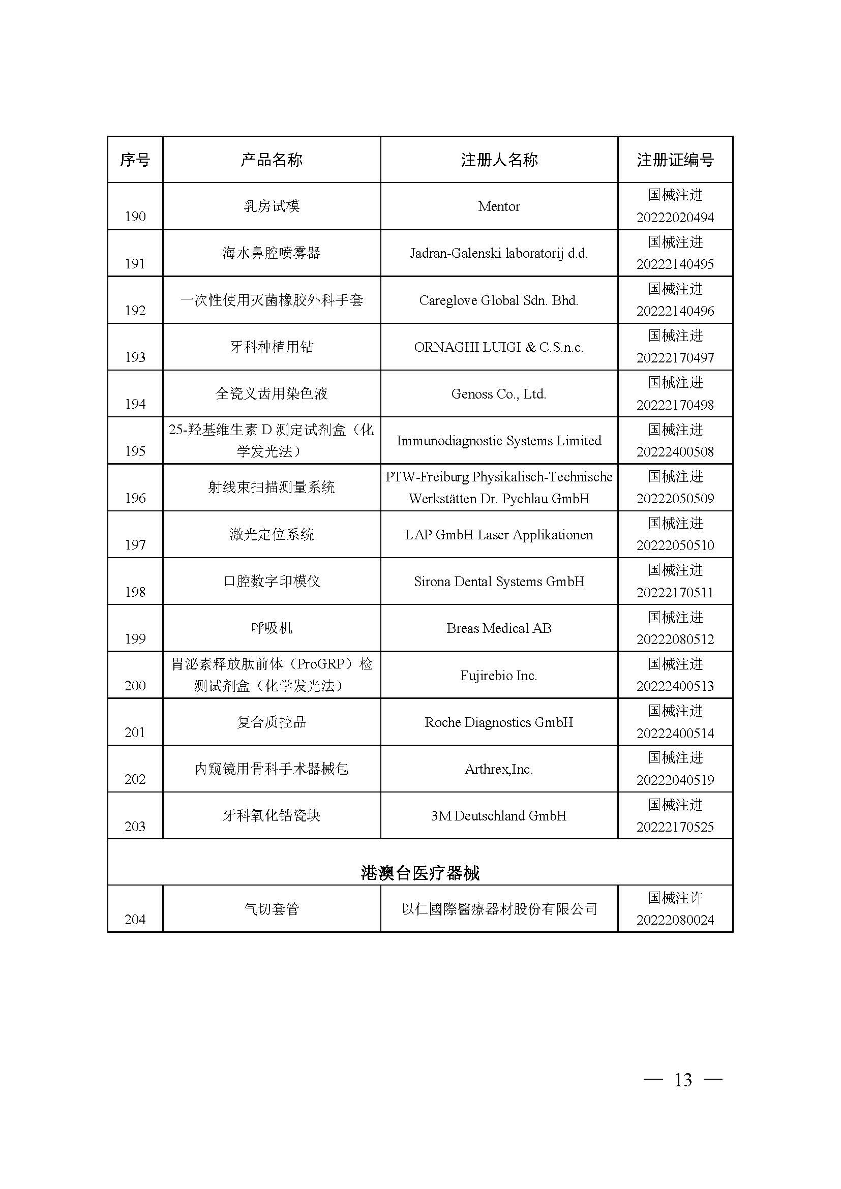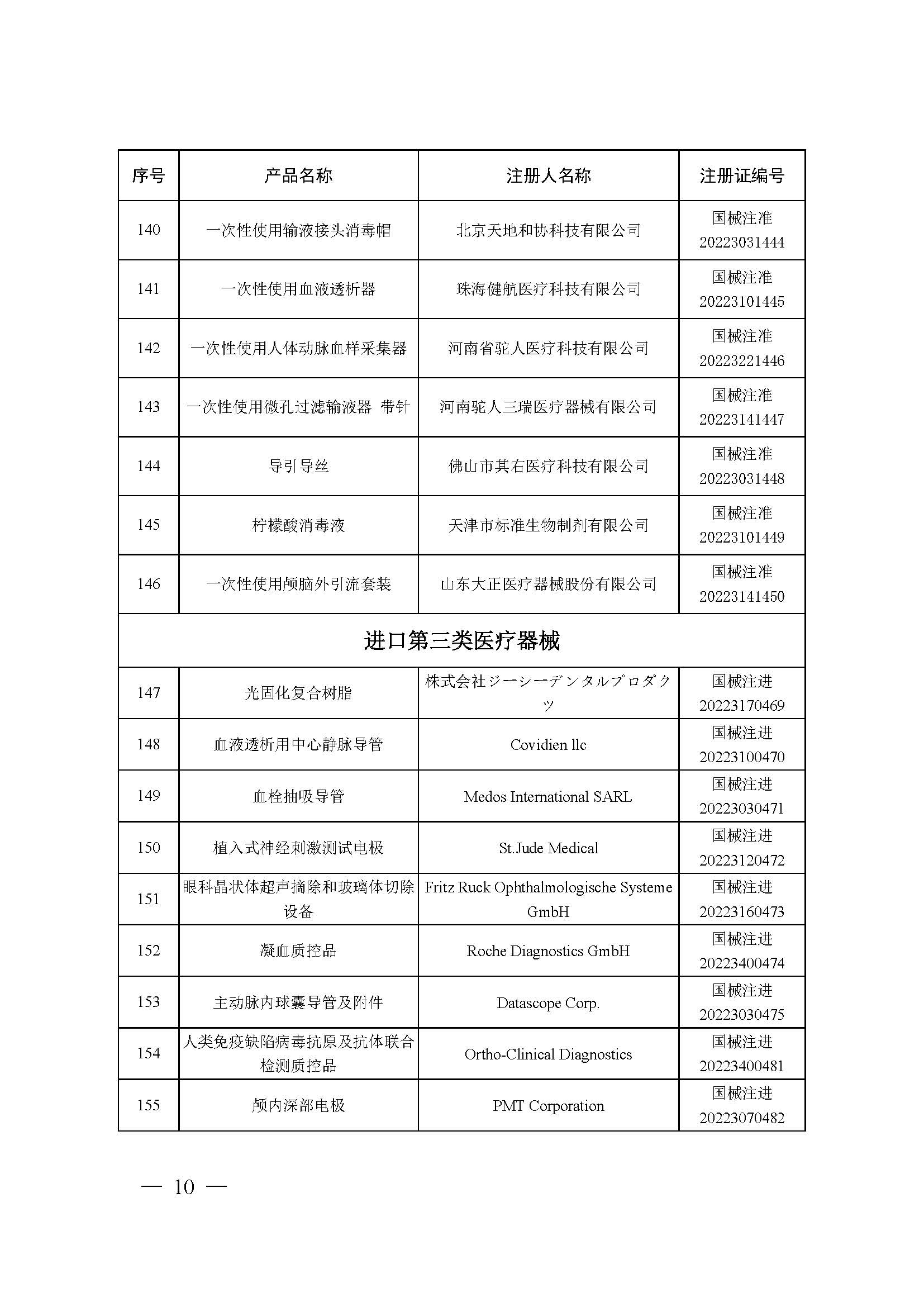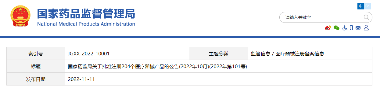 2022年10月,國家藥品監(jiān)督管理局共批準注冊醫(yī)療器械產(chǎn)品204個。其中,境內第三類醫(yī)療器械產(chǎn)品146個,進口第三類醫(yī)療器械產(chǎn)品34個,進口第二類醫(yī)療器械產(chǎn)品23個,港澳臺醫(yī)療器械產(chǎn)品1個(具體產(chǎn)品見附件)。