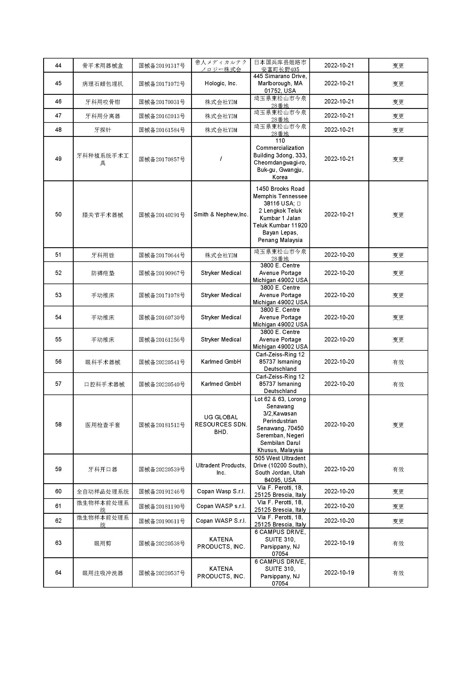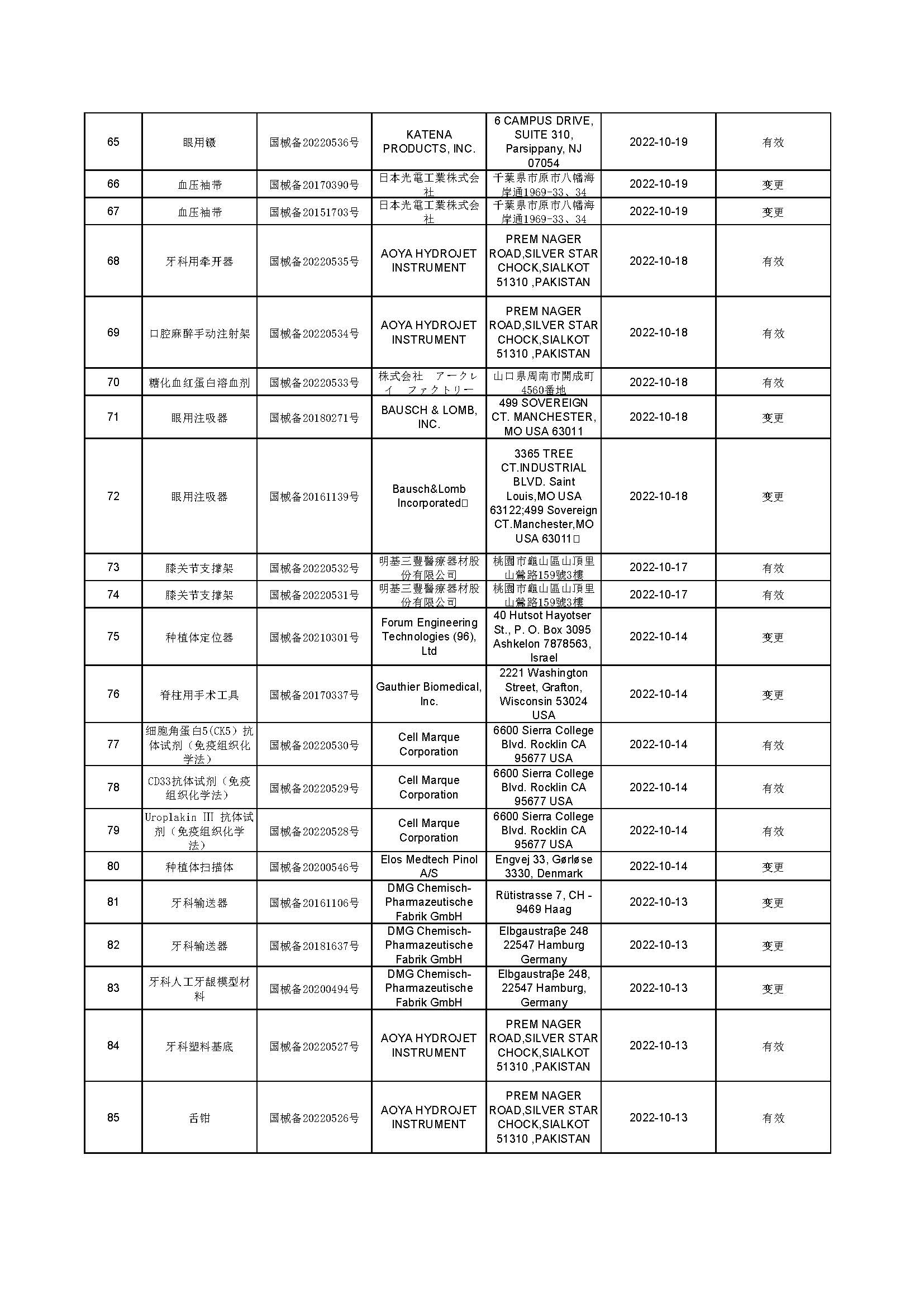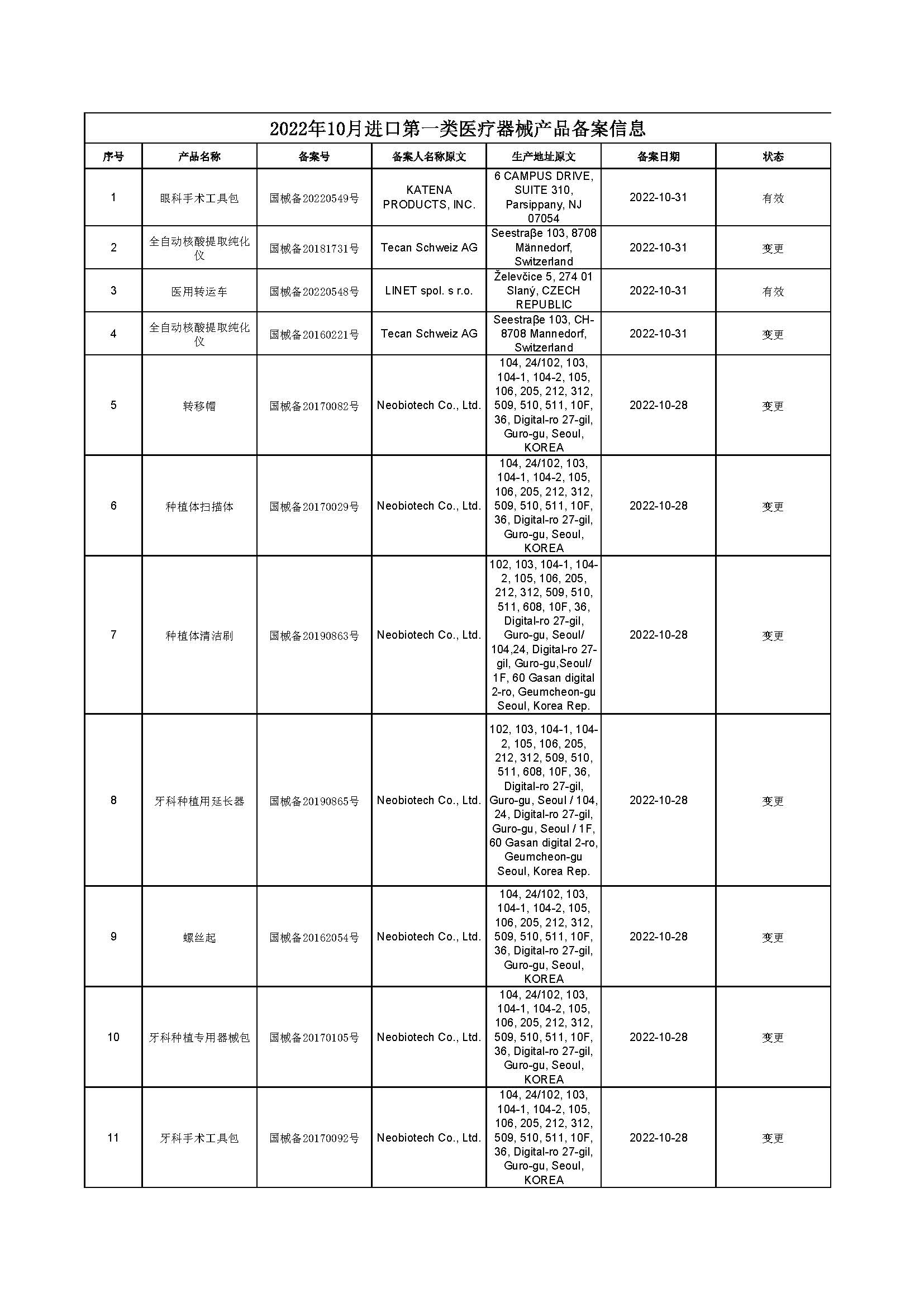 附件:2022年10月進口第一類醫(yī)療器械產(chǎn)品備案信息