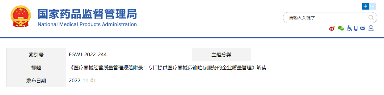 醫(yī)療器械的質(zhì)量安全關(guān)乎人民群眾生命健康,醫(yī)療器械經(jīng)營過程中的運輸、貯存環(huán)節(jié)直接影響產(chǎn)品的質(zhì)量安全。黨中央、國務(wù)院高度重視醫(yī)療器械質(zhì)量安全與醫(yī)藥行業(yè)健康發(fā)展,《中共中央 國務(wù)院關(guān)于加快建設(shè)全國統(tǒng)一大市場的意見》中明確指出:“建設(shè)現(xiàn)代流通網(wǎng)絡(luò)。大力發(fā)展第三方物流,支持?jǐn)?shù)字化第三方物流交付平臺建設(shè),推動第三方物流產(chǎn)業(yè)科技和商業(yè)模式創(chuàng)新,培育一批有全球影響力的數(shù)字化平臺企業(yè)和供應(yīng)鏈企業(yè),促進(jìn)全社會物流降本增效。”為進(jìn)一步貫徹落實《醫(yī)療器械監(jiān)督管理條例》,推動《醫(yī)療器械經(jīng)營監(jiān)督管理辦法》《醫(yī)療器械經(jīng)營質(zhì)量管理規(guī)范》有效實施,保證醫(yī)療器械在運輸、貯存環(huán)節(jié)的質(zhì)量安全,國家藥監(jiān)局組織制定了《醫(yī)療器械經(jīng)營質(zhì)量管理規(guī)范附錄:專門提供醫(yī)療器械運輸貯存服務(wù)的企業(yè)質(zhì)量管理》(以下簡稱《附錄》)。