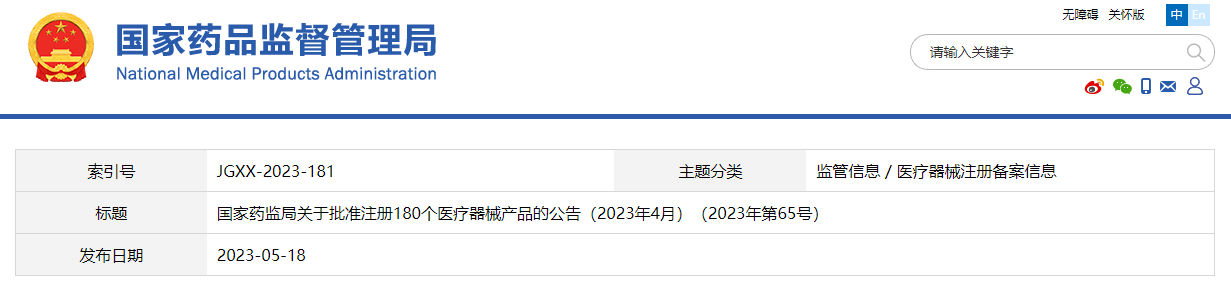 2023年4月,國家藥監(jiān)局共批準注冊醫(yī)療器械產(chǎn)品180個。其中,境內(nèi)第三類醫(yī)療器械產(chǎn)品125個,進口第三類醫(yī)療器械產(chǎn)品21個,進口第二類醫(yī)療器械產(chǎn)品33個,港澳臺醫(yī)療器械產(chǎn)品1個(具體產(chǎn)品見附件)。