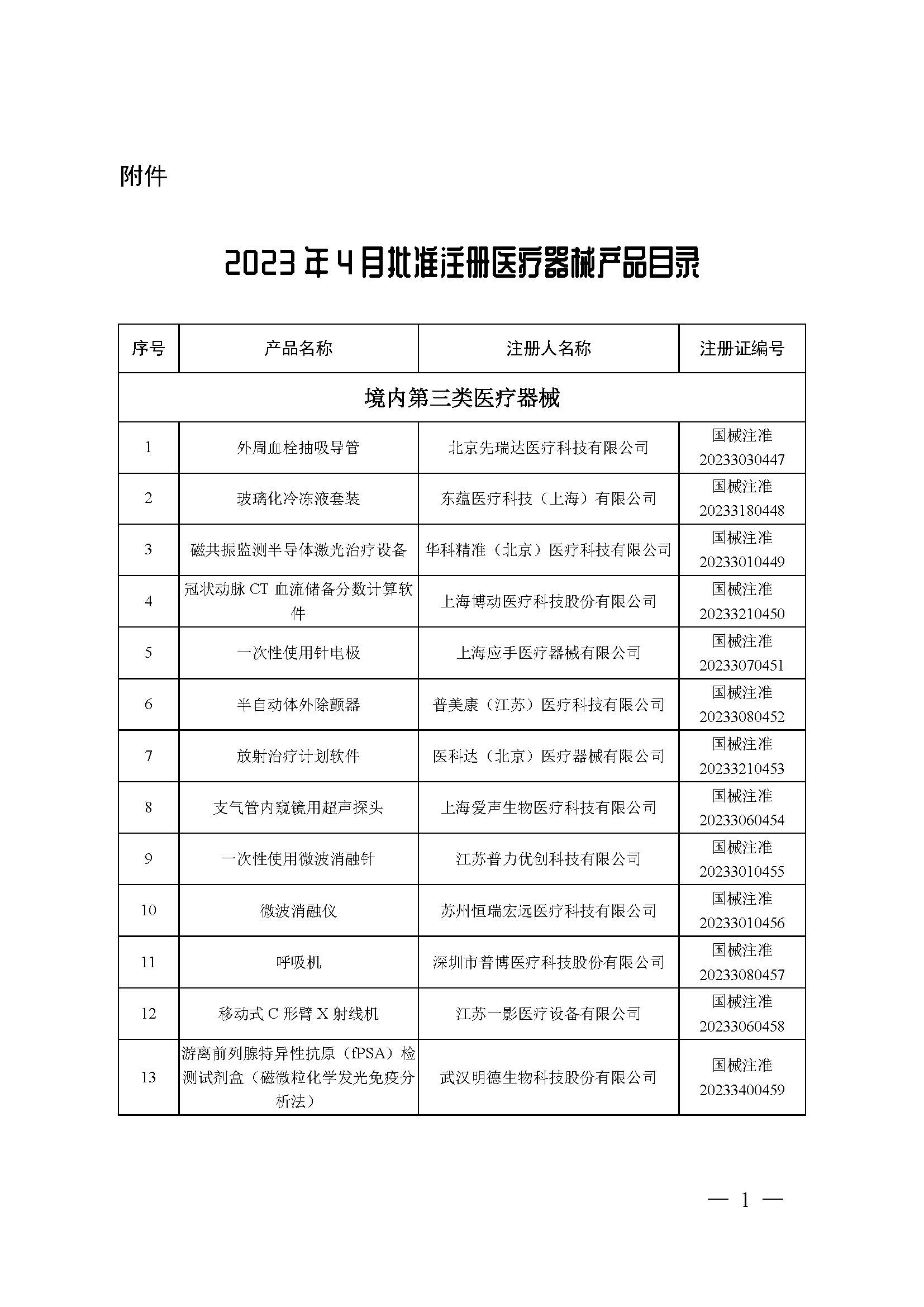 附件:2023年4月批準注冊醫(yī)療器械產(chǎn)品目錄