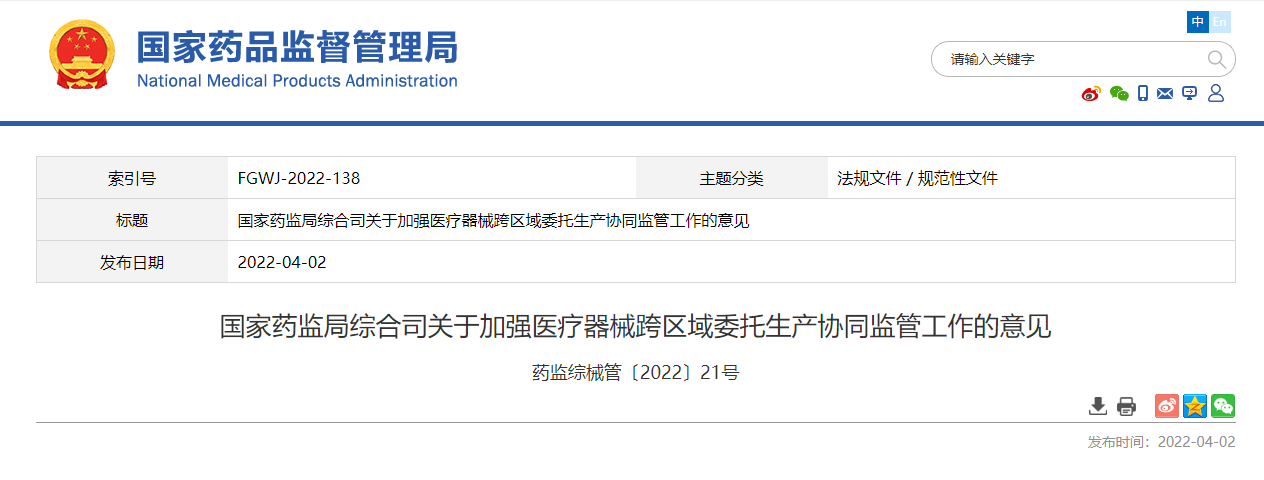 來源:國家藥監(jiān)局綜合司 錄入時間:2022/4/6 10:23:06 點(diǎn)擊次數(shù):449