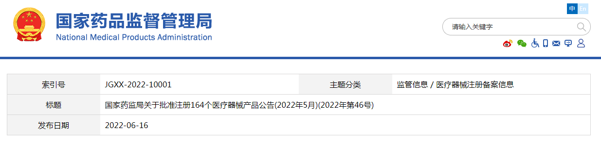 來(lái)源:國(guó)家藥品監(jiān)督管理局 錄入時(shí)間:2022/6/17 8:44:50 點(diǎn)擊次數(shù):595