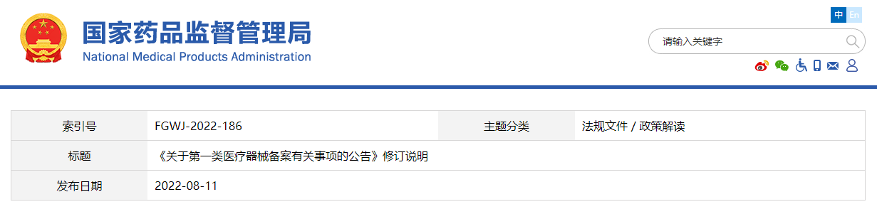 為進(jìn)一步做好第一類醫(yī)療器械備案工作,國家藥品監(jiān)督管理局組織對(duì)原食品藥品監(jiān)管總局發(fā)布的《關(guān)于第一類醫(yī)療器械備案有關(guān)事項(xiàng)的公告》(2014年第26號(hào))進(jìn)行修訂,發(fā)布了新《關(guān)于第一類醫(yī)療器械備案有關(guān)事項(xiàng)的公告》(2022年第62號(hào),以下簡稱本公告)。